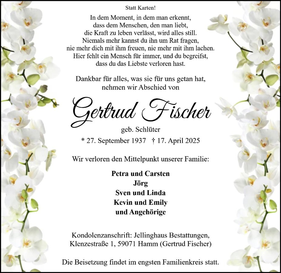 Und sage Danke, dass ich Sie ein Stückweit auf dem Weg des Abschieds begleiten darf.