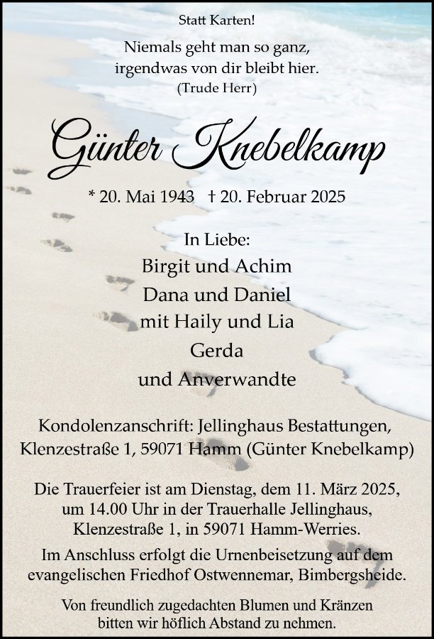 geboren am 20. Mai 1943 gestorben am 20. Februar 2025
