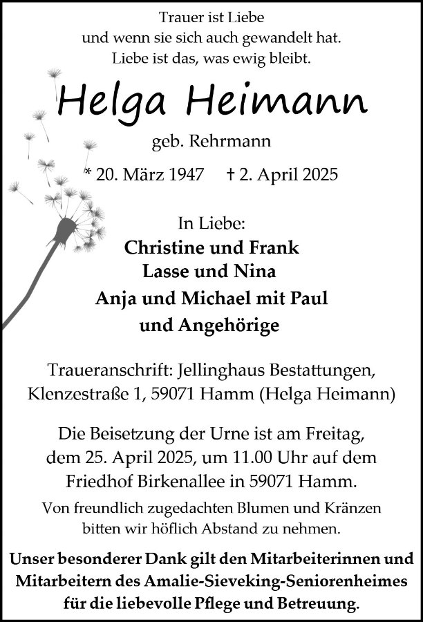 wir wünschen Ihnen von Herzen viel Kraft, dass Sie Menschen um sich haben, die Ihnen in dieser schweren Zeit beistehen und Halt geben. Zusätzlich können Sie auf dieser Gedenkseite Erinnerungen teilen und so das Andenken gemeinsam wachhalten.