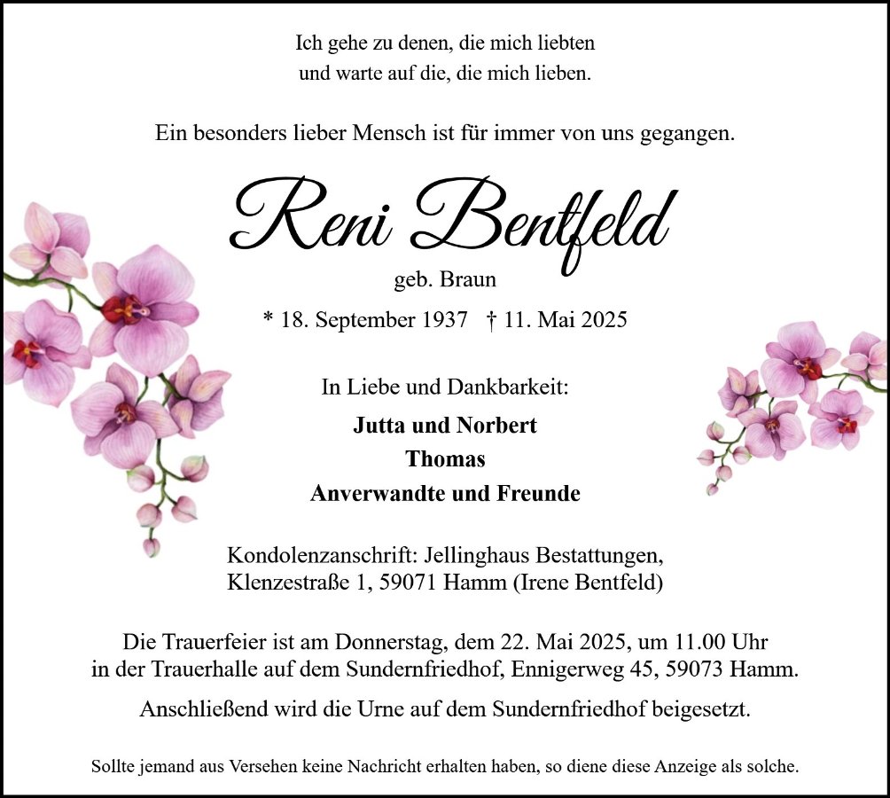 Im Andenken an einen geliebten Menschen. Wir werden dich vermissen, Reni.Silke und Timo
